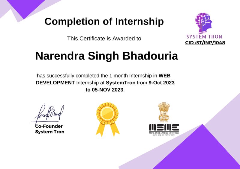 He has worked as a Frontend Developer at EVE Healthcare Centres Pvt. Ltd and a Full Stack Developer at Systemtron, excelling in coding and integration tasks. Narendra's leadership roles include Brand Ambassador for IIT Madras and Class Representative. He holds certifications from Google, IAB Europe, and NPTEL. His strong technical skills, leadership qualities, and project successes make him a valuable asset to any team.