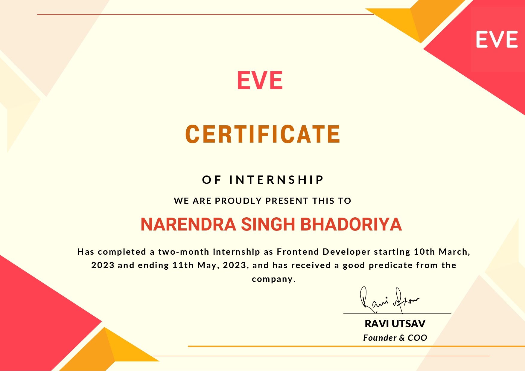Based on Narendra's outstanding performance as a Frontend Developer intern, I have no doubt that he will excel in any role he pursues. I highly recommend him for any frontend development position, as I am confident that he will make significant contributions to your organization.